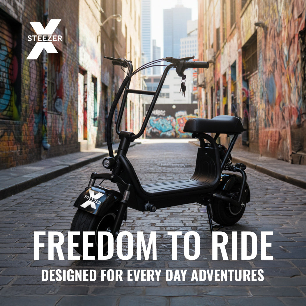 Steezer X: Top speed 25 km/h, up to 45 km range.